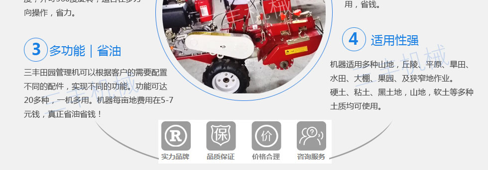 ,在國內外享有盛譽。不僅要為客戶提供高性價比的產品田園管理機,更要為客戶提供合理 的設備選型,